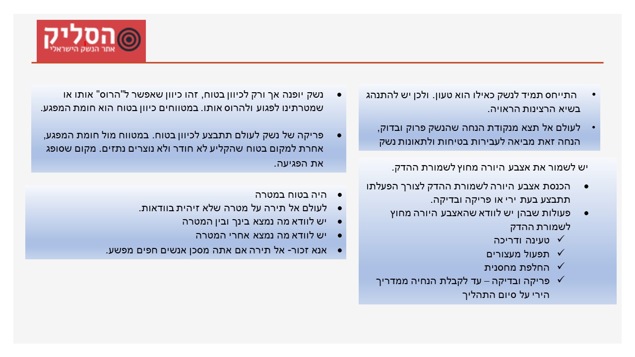 תחום חשוב ונוסף הינו מאגרי הידע שלנו, בתחום הנשק והמטווחים בארץ, נשמח לקבל מידע רלוונטי ולצרף אל צוות האתר את אלו המעוניינים לרכז ולארגן את החומרים השונים בתחום.
